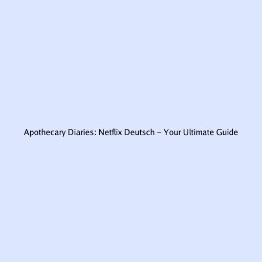Apothecary Diaries: Netflix Deutsch - Your Ultimate Guide